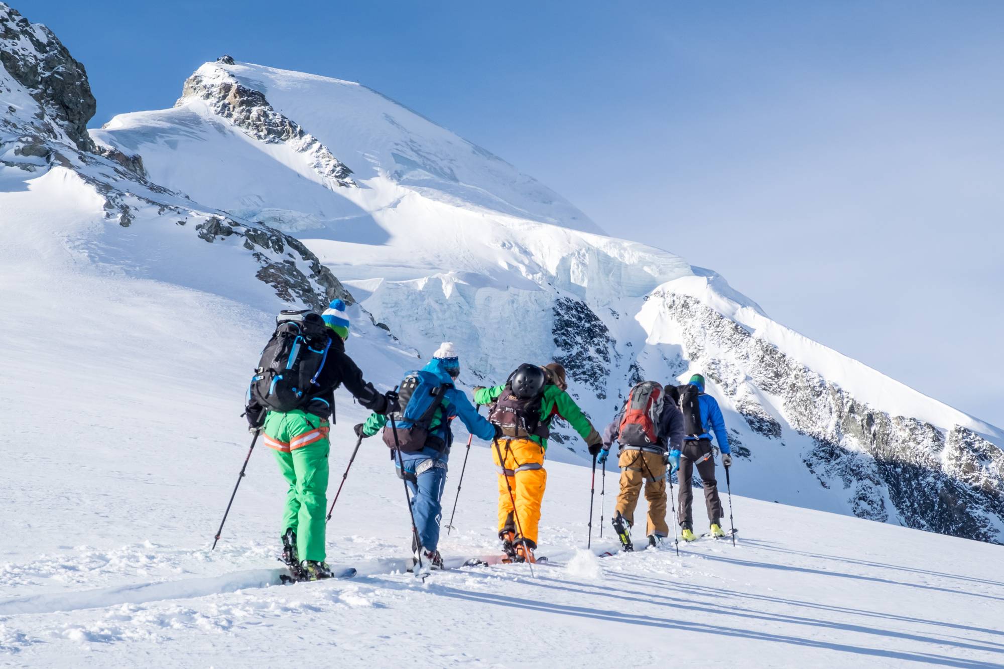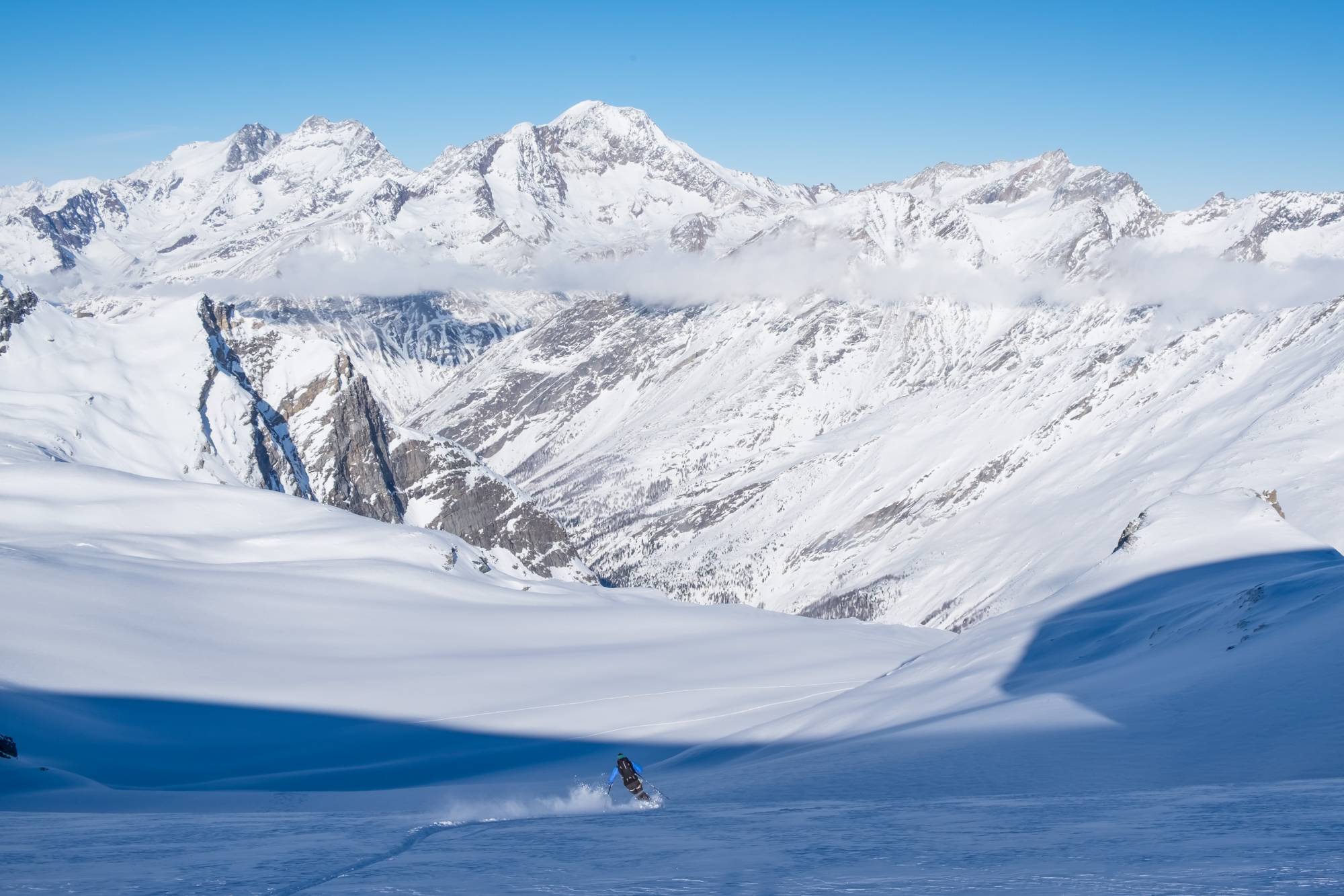 Ob mit Ski, Snowboard oder Telemark: für diese technisch einfache Tagestour werden Sie sich schnell begeistern. Obwohl der Gipfel knapp unterhalb der 4000m Höhenzone liegt, ist der Blick auf die imposante Monte Rosa Ostwand sehr eindrucksvoll. Eine attraktive Auswahl an Varianten und schier endlosen Abfahrten ins Mattmark und bis nach Saas- Almagell vollenden einen grandiosen Tag!