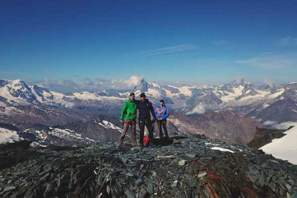 Diese Besteigung erfordert einen frühen alpinen Start. Von der Britanniahütte führt der Weg zunächst über den Hohlaubgletscher. Dann geht es weiter über den langen, ausgedehnten Allalingletscher, unter den Ostwänden des Rimpfischhorns hindurch, bis zum Adlerpass (3789 m). Von dort folgen wir dem zunächst klar definierten und später breiteren Grat bis zum Gipfel. Die Aussicht auf die Ostwand des Monte Rosa, die höchste Wand der Alpen, ist atemberaubend. Diese Tour ist zwar technisch sehr einfach, erfordert jedoch eine sehr gute Kondition. Der Abstieg erfolgt über die gleiche Route. Beste Zeit: 19. Juni - 20. September 2026 Kondition Technik Einfache Schneetour. Geringe Steigung Sehr gute sportliche Fitness erforderlich. Akklimatisierung von Vorteil Aufstieg 1250m / 6 Std. Abstieg 1250m / 3.5 Std. Tour Wann auf Anfrage Preis CHF 1'180.- pro Tour (1 Pers.) CHF 630.- pro Person (2 Pers.) CHF 450.- pro Person (3 Pers.) Das Taxi von Mattmark nach Saas-Fee is im Preis inklusive. Die Bahnkarte, sowie die Hüttenkosten sind nicht im Preis inbegriffen. Die Tour ist nur mit Steigeisenerfahrung möglich. Erforderliche Ausrüstung: Klettergurt Steigeisen mit Antistoll Pickel Wanderstock Stirnlampe warme und windfeste Kleidung (evtl. Gamaschen) Handschuhe Hut oder Mütze Sonnenbrille und Sonnenschutz Mietausrüstung: Produkt Preis (CHF) Klettergurt 10.- Steigeisen 10.- Teleskopstock 5.- Bergschuhe 15.- Pickel 10.-