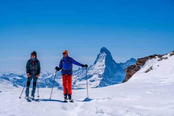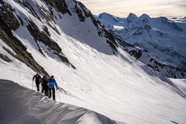 Das Rimpfischhorn ist sehr abgelegen und von keiner Seite einfach zu erreichen. Die felsige ausgesetzte Gipfelpartie ist besonders interessant. Von der Britanniahütte steigt man über den Allalingletscher zum Allalinpass, anschliessend auf dem Mellichgletscher hoch zum Rimpfischsattel. Hier beginnt die Kletterei von ca. 1 Stunde im 2. - 3. Schwierigkeitsgrad hinauf auf den Gipfel 4199m. Beste Zeit: 6. März - 16. Mai 2026 Kondition Technik Mittelschwere Schnee- und Felstour Sehr gute, sportliche Grundkondition Aufstieg 1300m / 7 Std. Abstieg 1300m / 4 Std. Privat Tour Wann auf Anfrage Preis CHF 1400- pro Tour (1 Pers.) Der Transport von Täsch oder Saas-Almagell ist nicht inbegriffen. Die Kosten für die Übernachtung sind nicht inbegriffen. Es sind auch noch Kosten für die Bergführerpauschale (Hüttenübernachtung) 45.- CHF zu tragen. Die Gondelfahrt auf Felskinn ist nicht im Preis inbegriffen. Nach dem offiziellen Saisonende, gibt es täglich eine Bergfahrt hoch auf Felskinn um 16.15 Uhr sowie eine Talfahrt um 16.30 Uhr. Erforderliche Ausrüstung: Lawinen Rescue Set (LVS, Schaufel, Sonde) Klettergurt Tourenskis / Splitboard mit Tourenbindung, Fellen und Harscheisen Steigeisen Mietausrüstung: Produkt Preis (CHF) Klettergurt 10.- LVS 20.- Lawinenschaufel 5.- Lawinensonde 5.- Touren-Skis, Felle, Harscheisen 65.- Touren-Skischuhe 25.- Steigeisen 10.-