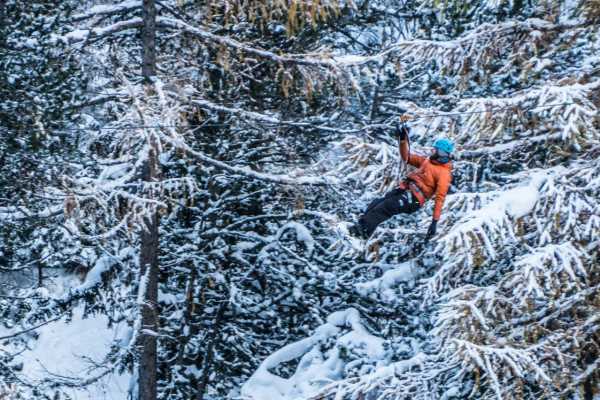 This spectacular tour from Saas-Fee to Saas Grund is by far the most beautiful and thrilling way of connecting the two villages. The trail passes through natural canyons, caves, water falls and alpine vegetation. In addition, you will experience zip lines, suspension bridges and pendulum swings with one rappel at the end of the tour. For hundreds of years people only dared glimpse into the depth of the Saaser Vispa canyon. Nowadays we glide down its center via iron cables, pegs and ladders. While perhaps being intimidating at the start, butterfly-filled stomachs and wobbly knees will give way to smiles and screams of triumph while overcoming the forces of gravity through natural terrain. The canyon adventure is the event for groups, clubs and families. Best time: all year Fitness Level Skill Level Easy tour No special fitness requirements Winter Tour (lower part) Duration 2-3h Prices When on request Price CHF 670.- per tour (1 pers.) CHF 380.- per person (2 pers.) CHF 287.- per person (3 pers.) CHF 233.- per person (4 pers.) CHF 200.- per person (5 pers.) Group tours are possible. Shuttle from Saas-Grund is included. Equipment included: All participants are provided with helmet, climbing harness and via ferrata equipment. Rental equipment: Item Price (CHF) Hiking boots 15.-